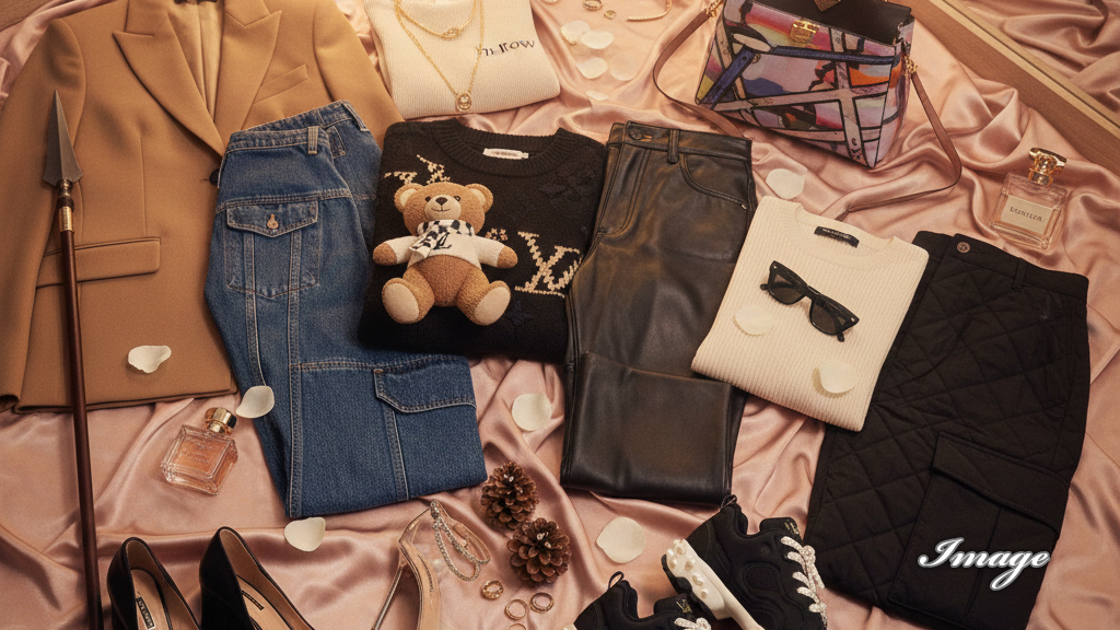 - くまちゃんの着こなし: くまちゃんが「ルイ・ヴィトンのマフラー」をしており、細部までこだわりを感じさせます。