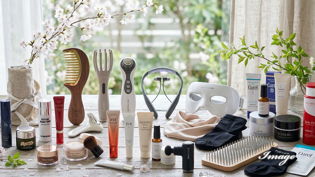 頭皮をほぐすブラシから始まり、目元、唇、首、手先、そして足裏やかかとのスペシャルケアに至るまで……。ヒロさんの圧倒的な美しさを支える「頭から爪先までのケアアイテム」を網羅した、まさに完全保存版のリストです。