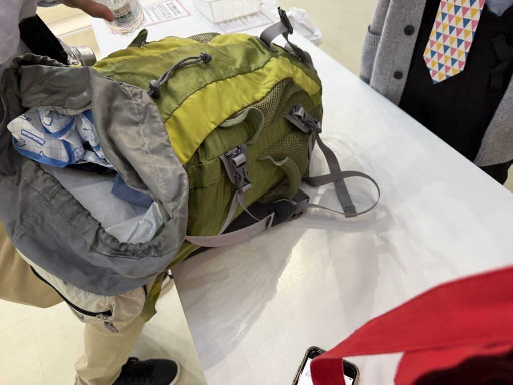 相方さんは大きなリュックを背負っていたので、広げて中を確認してもらいました(中身を出す必要はありません)