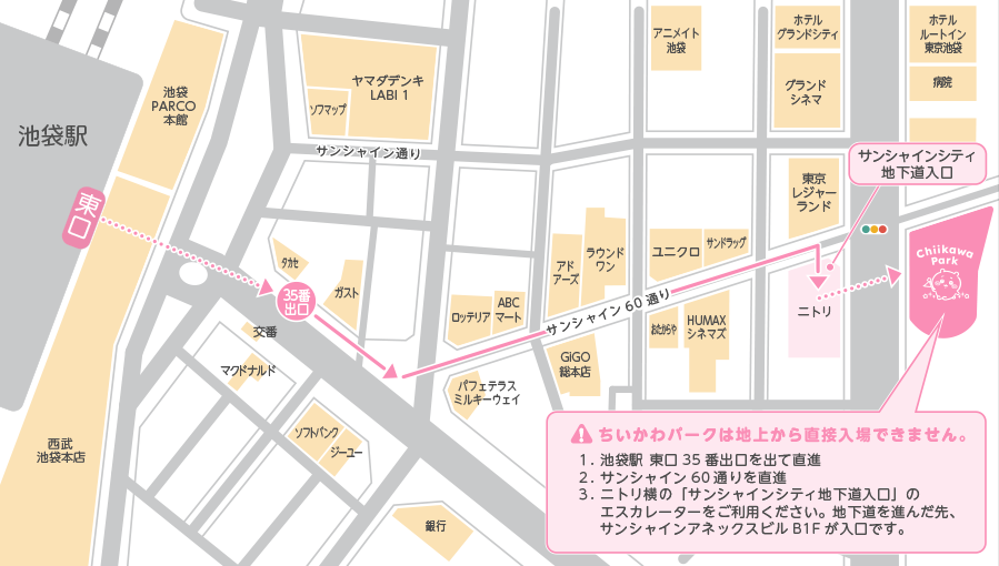 地下道を歩き、ちいかわパークの入り口を見つけました。