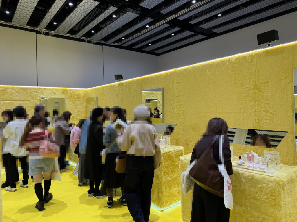 私を含めた参加者の勢いがすごいエリアでしたが、小田切ヒロさんオススメのコスメを試したり、スタッフの話を真剣に聞いていました(人が多すぎて、人にモザイク処理をかけると何も見えない・・・)