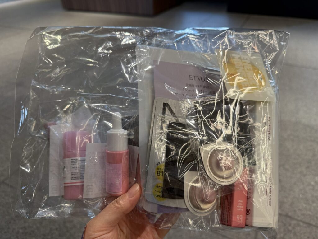 特典でいただいたコスメは、3種類のテーマから選べるのですが、すごいたくさんの量入っていました(相方さんの分もあるので、2倍です)
