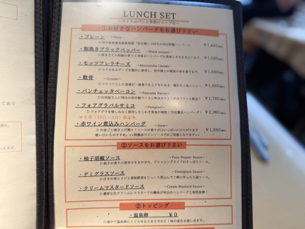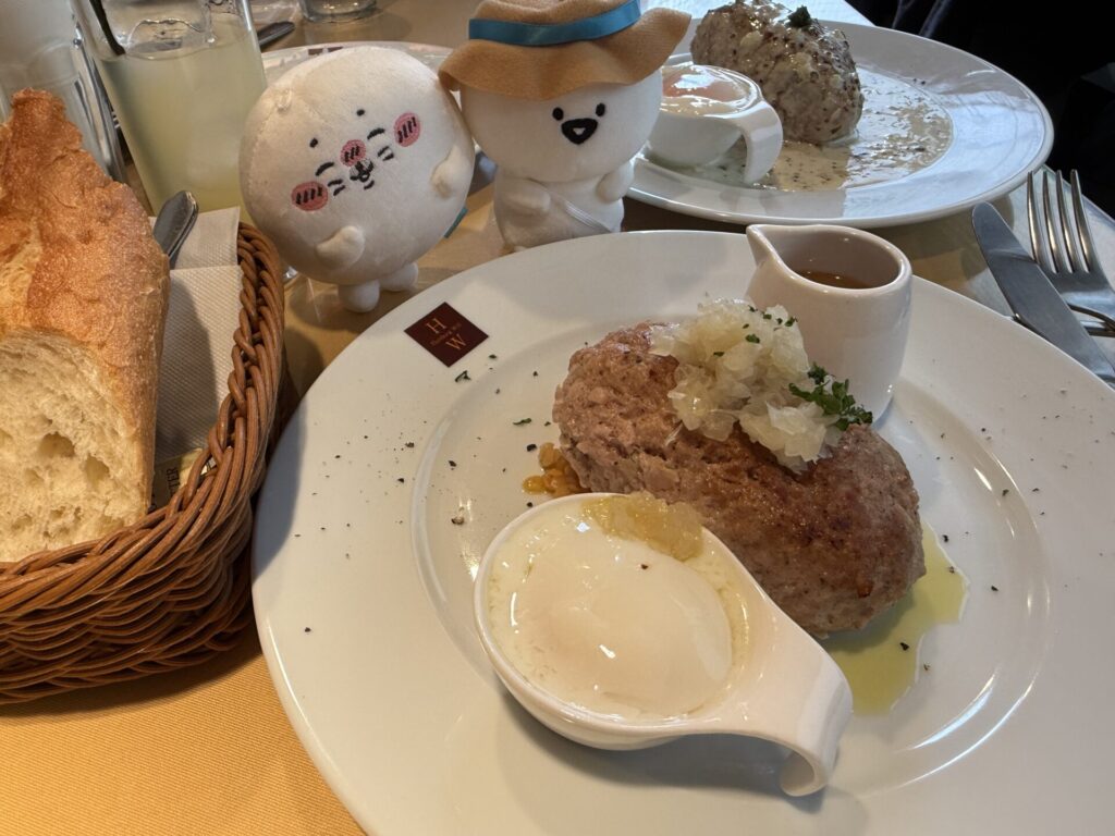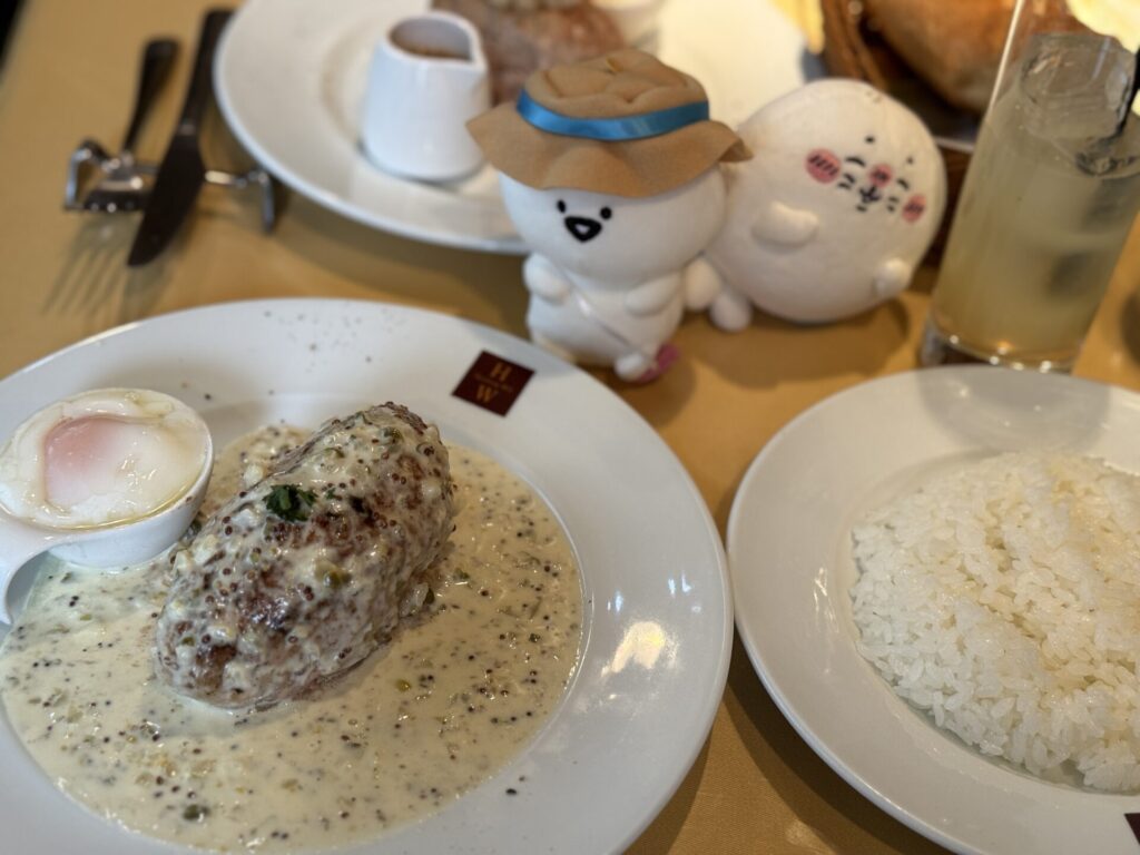 関西では、ほぼ見たことない豚肉100%のハンバーグだったので、プレーンをオーダーしました。