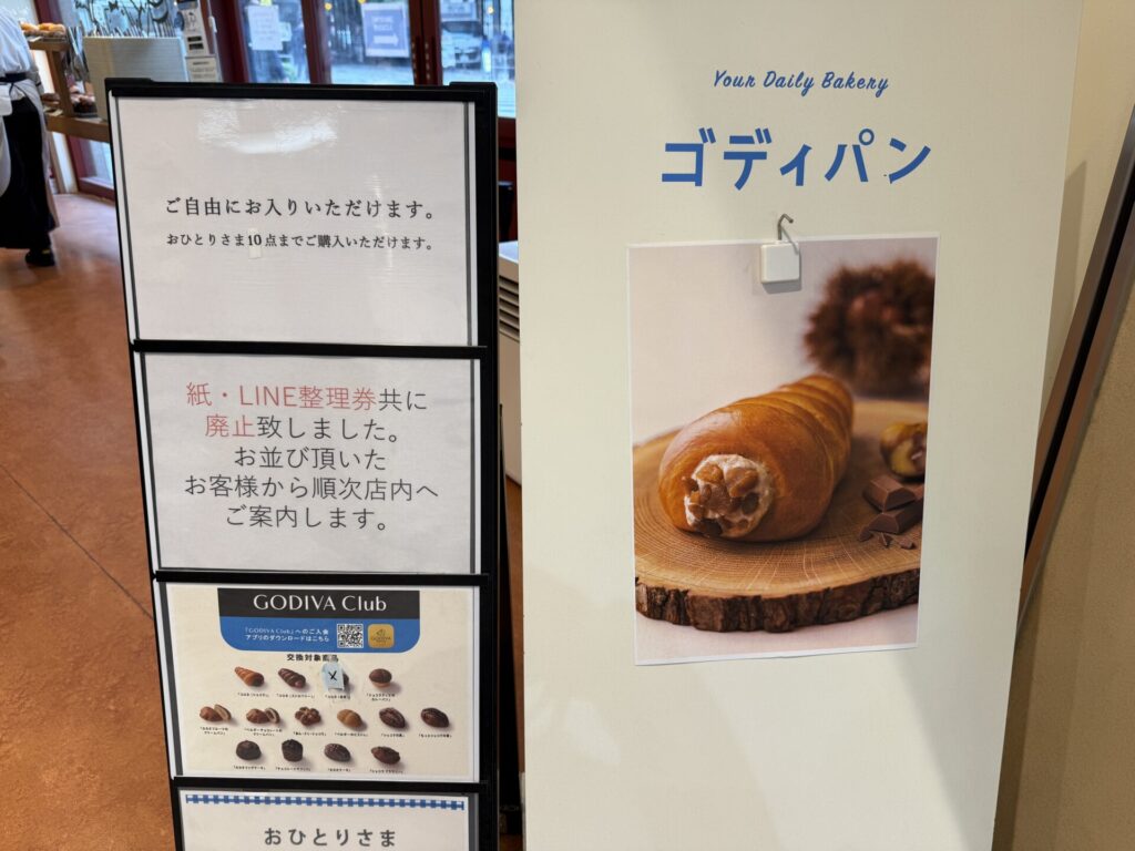 レンタサイクルを有楽町西口で返却して、ナガノマーケットGINZAへ向かおうとすると、つい見つけてしまったのが、ゴディバのパン。