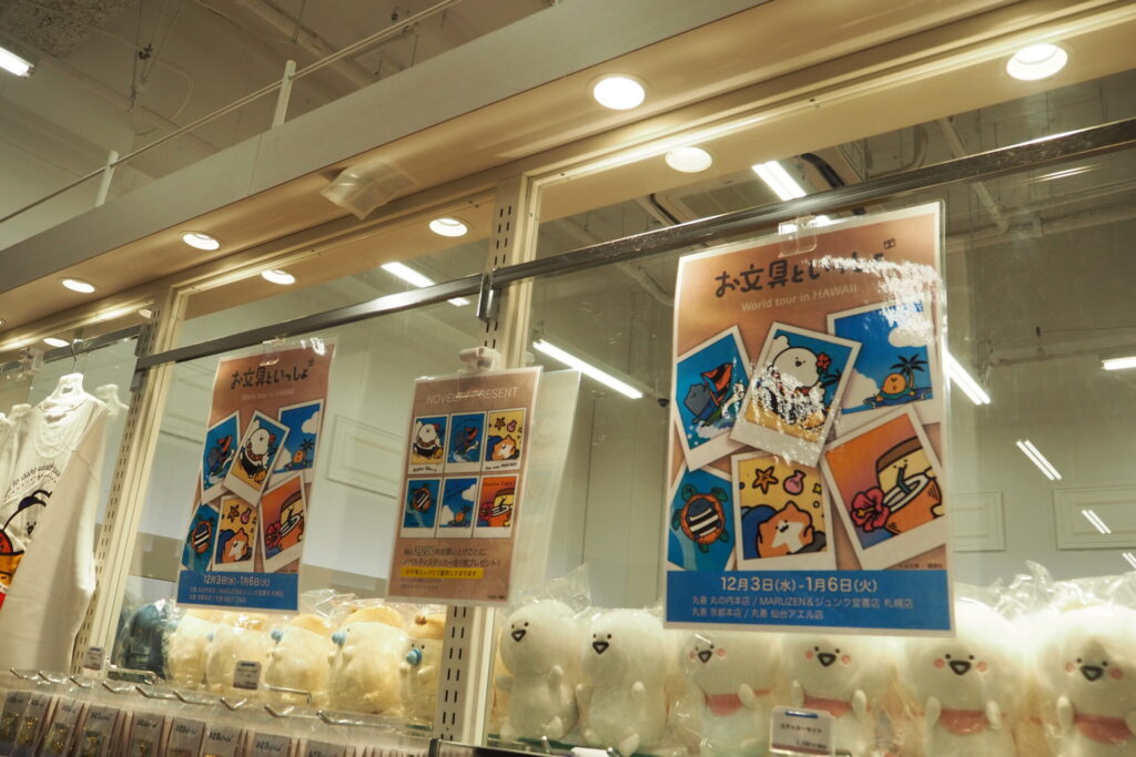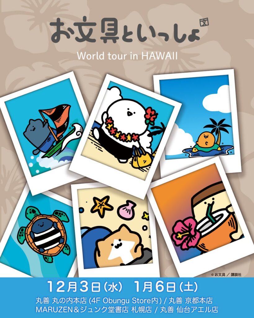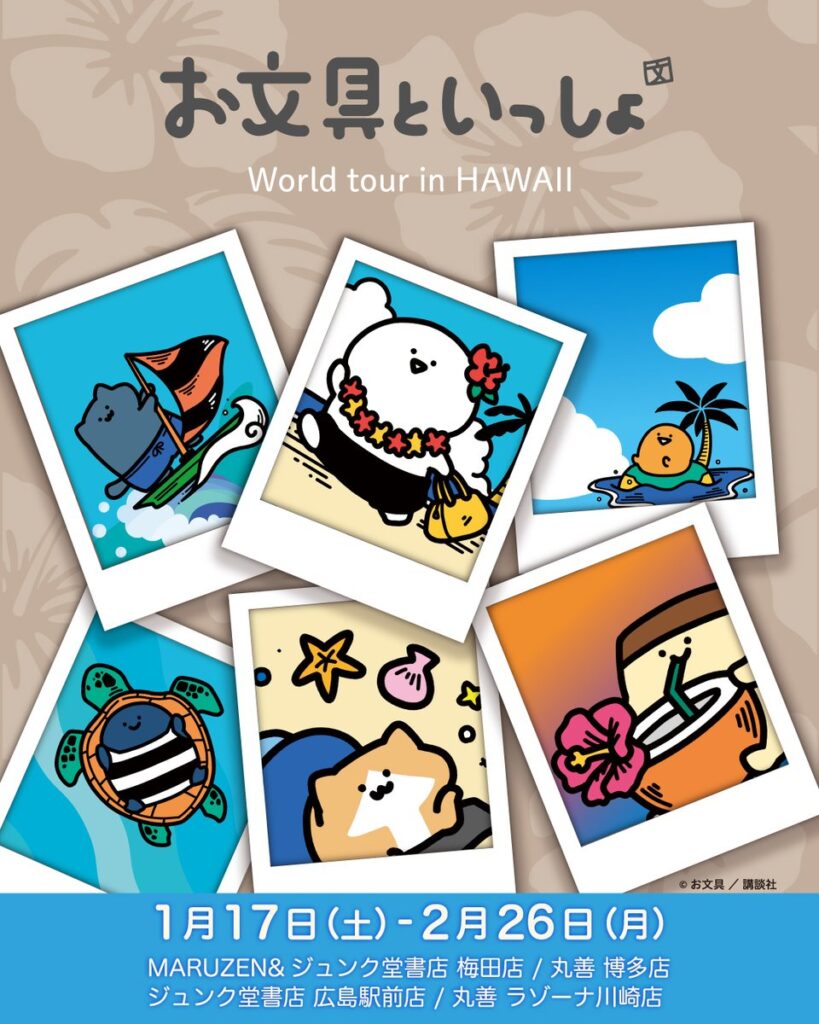 大人気キャラクター「お文具といっしょ」が、京都丸善本店で開催されたワールドツアーinハワイに登場!