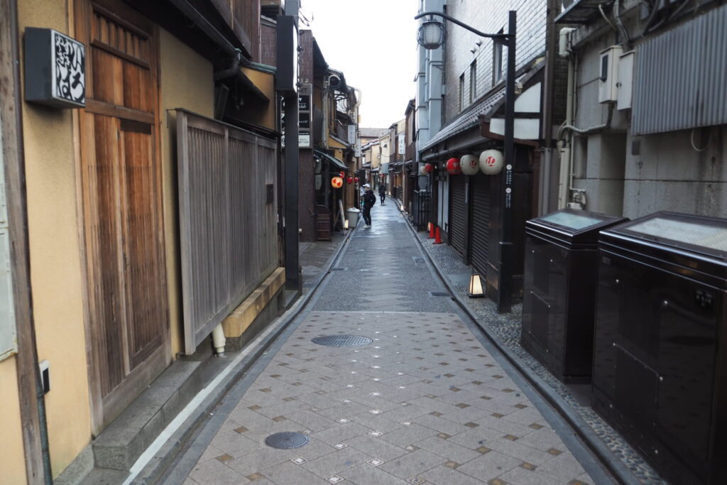 先斗町は、意外な路地が大通りへの抜け道になっているので、地元の人々が突然現れたり不思議な空間ですね。