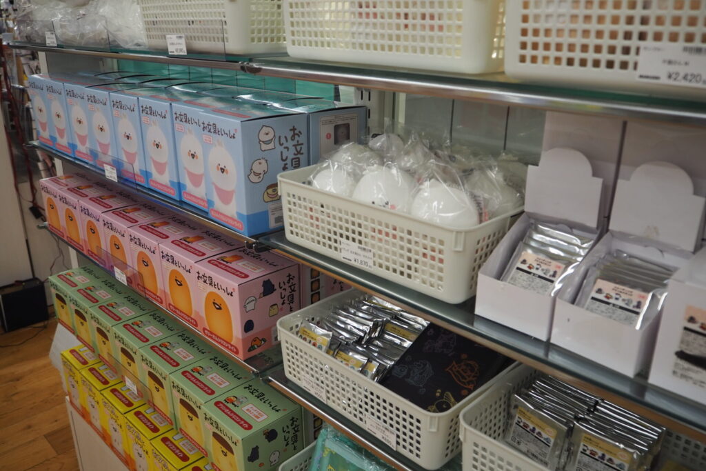 レジの後ろにノベルティグッズ