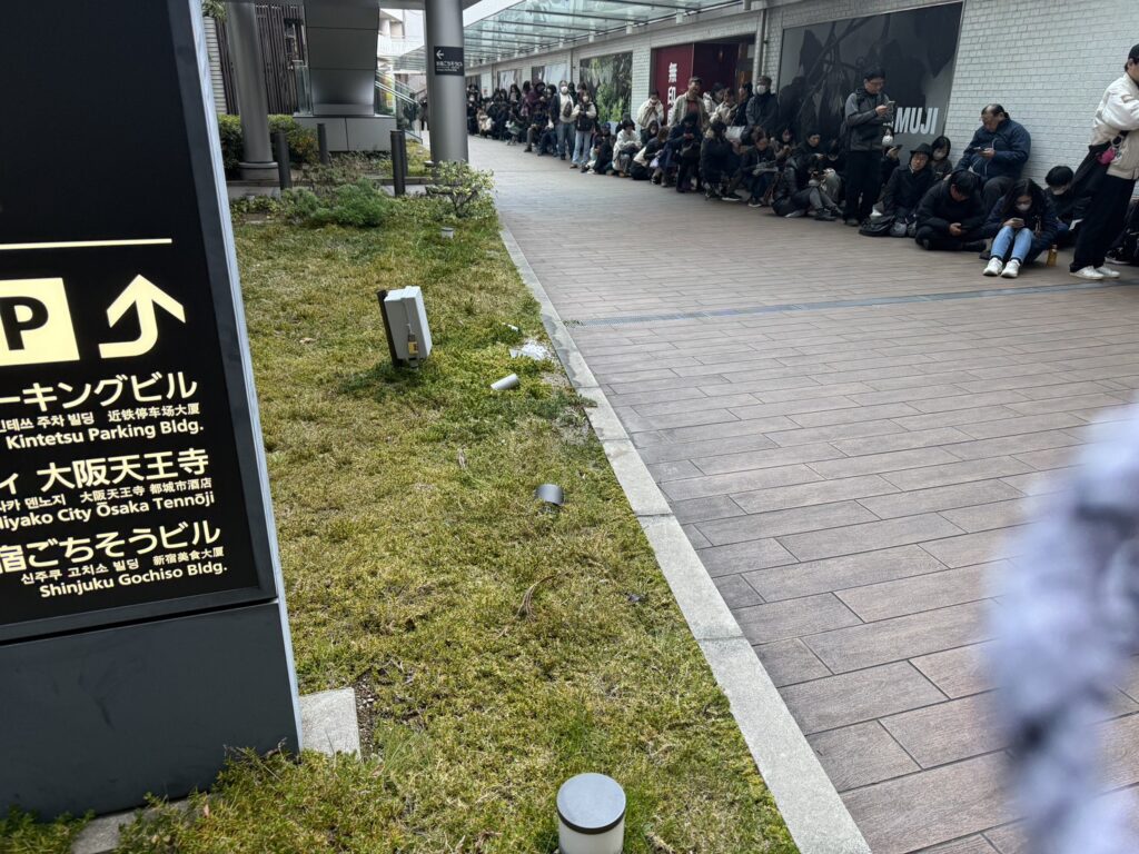 私は、イトーヨーカドーあべの店の2階へのアクセスがよい入口にいたのですが、開店時間には30人くらい居ました(きっちり並んでいるわけではありません)