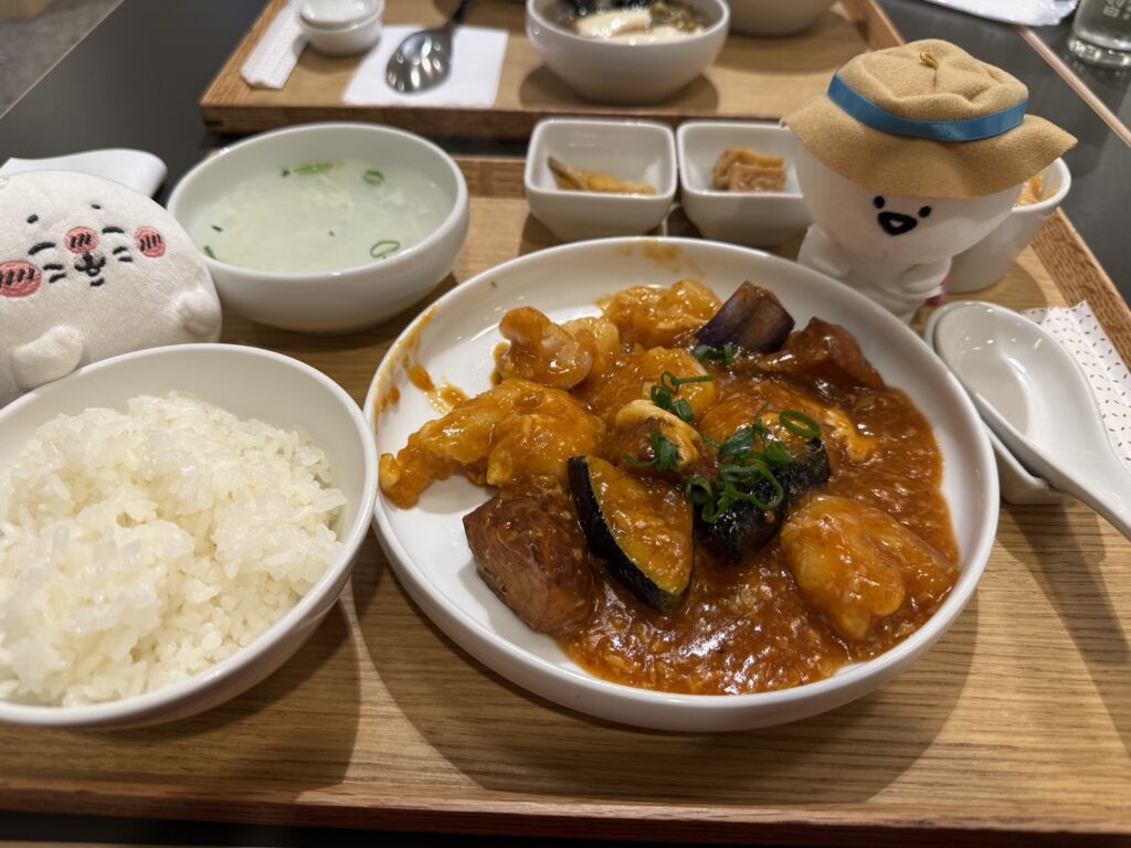 私は、定食セットを注文しました。(野菜と海老のチリソース:1,760円)